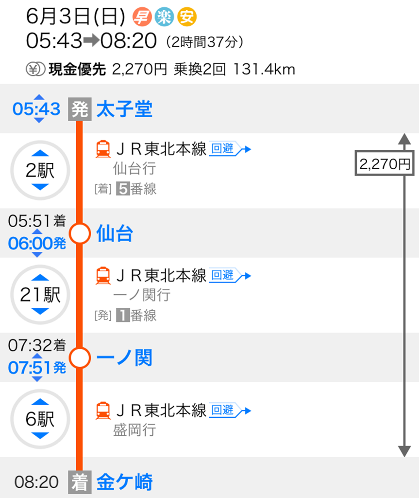 | 移動 | JR東北本線: 仙台発06:00 → 金ヶ崎着08:20 |